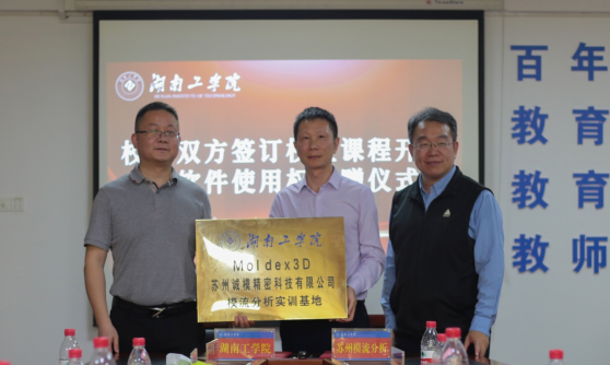 为了深入开展学习贯彻习近平新时代中国特色社会主义思想主题教育,扎实推进以学促干,将学习成果转化为高质量课程改革实践, 4月21日下午,我校与苏州诚模精密科技有限公司、苏州模流分析软件有限公司举行校企课程开课暨软件使用权捐赠签约。苏州诚模精密科技有限公司总经理朱清发、苏州模流分析软件有限公司总经理蔡铭宏,教务处副处长张勇、智能制造与机械工程学院班子成员和教师代表参加签约仪式。