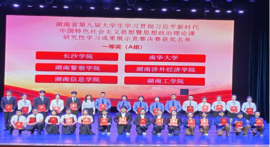 近日,湖南省第九届大学生学习贯彻习近平新时代中国特色社会主义思想暨思想政治理论课研究性学习成果展示竞赛活动在湖南第一师范学院落下帷幕。我校马克思主义学院伍小乐、徐茜老师指导的外国语学院翻译2202班黄康敏、马南桂、龙思雨、宁翔、徐梦林五位同学组成的学习小组的研究性成果《雷“力”风行 “锋”味传承——雷锋精神之光照亮新时代青年学生成长成才之路》历经校级初赛、省级复赛和省级决赛后,荣获省级一等奖,这是我校在该项赛事连续两年进入省级决赛并斩获大奖。此外,在本届竞赛中,我校还获得了1个省级二等奖和2个省级三等奖,获奖总数多、质量高。