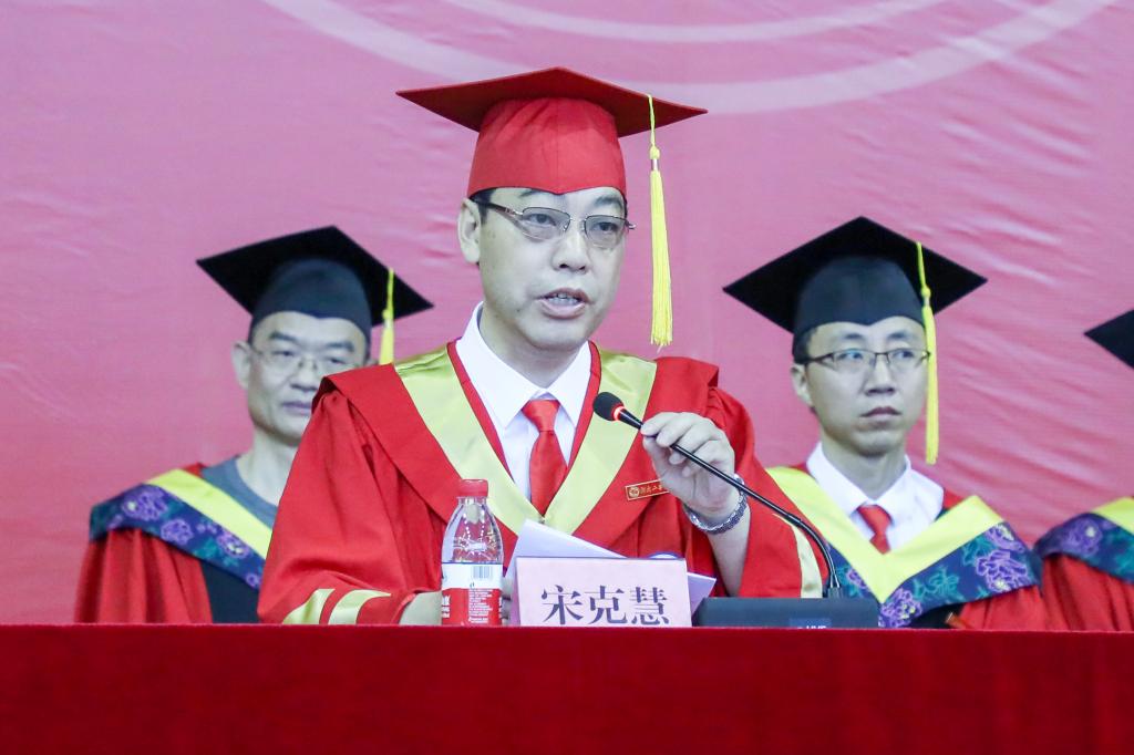 宋克慧在主持典礼时寄语2023届毕业生,青年兴则国家兴,青年强则国家强。一代人有一代人的长征,一代人有一代人的担当。希望同学们厚植爱国情怀,坚定理想信念;希望同学们勇于奋发有为,坚持干事创业;希望同学们笃定脚踏实地,坚守青春梦想。要始终守初心、担使命,做到越是艰险越向前,以只争朝夕、不负韶华的拼搏姿态,让青春逐梦的脚步行稳致远,努力成为敢于有梦、勇于追梦、勤于圆梦的新时代青年。