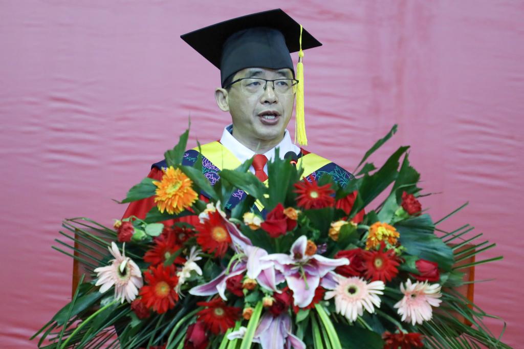 校党委书记宋克慧主持典礼,党委副书记、校长曹执令致毕业贺词,全体校领导、校学位评定委员会成员、相关职能部门负责人、教师代表、优秀校友代表、毕业生代表、家长代表出席了典礼。