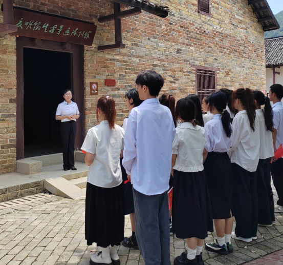 在夏明翰故居,马克思主义学院何璐老师以弘扬中国共产党人精神谱系为切入点,以“追忆夏明翰,探寻民族复兴密码”为主题,从夏明翰的少年岁月、革命岁月讲起,结合展厅内的历史照片、珍贵实物、红色故事等娓娓道来,为同学们形象地解读了夏明翰精神和建党精神的内涵。