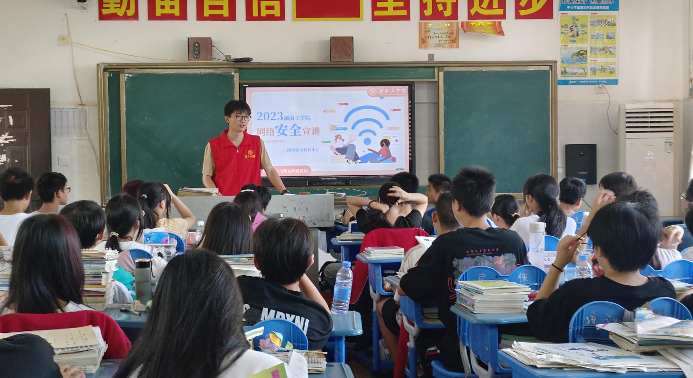 为助力推动“双减”政策,团队祁东县栗山学校开设了网络安全科普课程。宣讲中,成员们向学生们讲述了网络安全的基本知识和防范措施,包括如何创建安全的密码与如何识别网络欺诈等实用技巧。