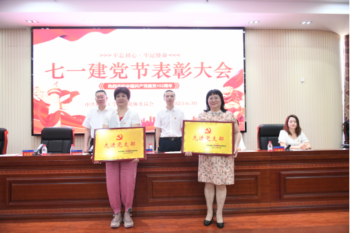 会上,校工会副主席阳萍宣读了有关表彰决定,刘艳等13名党员获评优秀共产党员,李治军等12名同志获评优秀党务工作者,离退休第一、第五党支部获先进党支部。随后,与会领导为受表彰的先进集体和个人代表颁发奖牌和荣誉证书。
