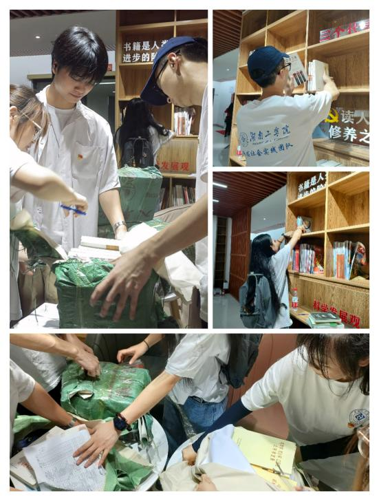 志愿团队到达社区服务中心后,副馆长郑红京跟社区书记宋诗妍进行了书籍捐赠交接,随后团队成员对书籍进行整理、分类和上架,此次活动共捐赠各类书籍300余册。图书馆志愿团队与社区,透过这温暖的书籍,架构起一座文化育人的知识桥梁。