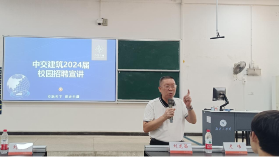 刘龙昌对中交建筑集团来我校举行专场招聘宣讲,表示热烈的欢迎,对莅临湖工专场招聘的工作人员表示衷心的感谢。
