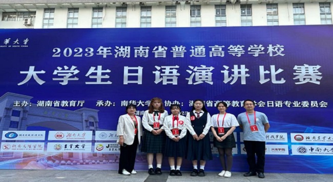 湖南省教育厅主办、湖南省高等教育学会日语专业委员会协办的2023年度第十四届湖南省普通高等学校大学生日语演讲比赛中,我校荣获团体三等奖,我校学生李佳纯、王梓毓分获个人二、三等奖。