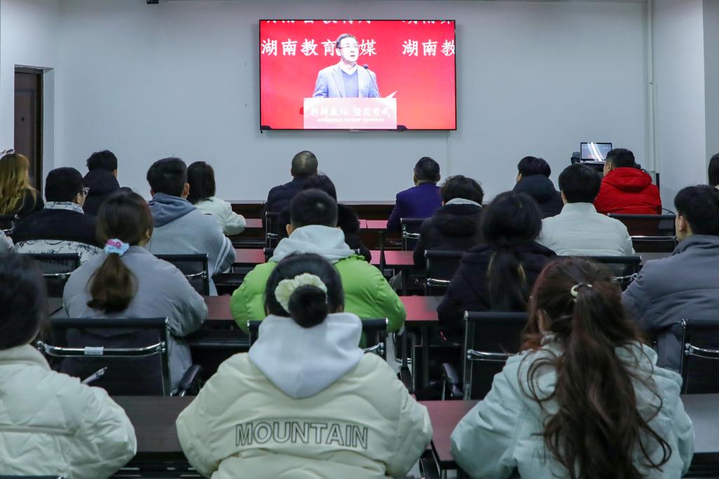 为贯彻落实习近平总书记关于弘扬教育家精神的重要指示精神,激励广大教职员工弘扬并践行教育家精神,3月1日上午,我校组织全体教职员工通过湖南教育发布(APP、视频号、微博号)线上直播,同步收听收看了中宣部、教育部在湖南第一师范学院开展的教育家精神2024年巡回宣讲活动。