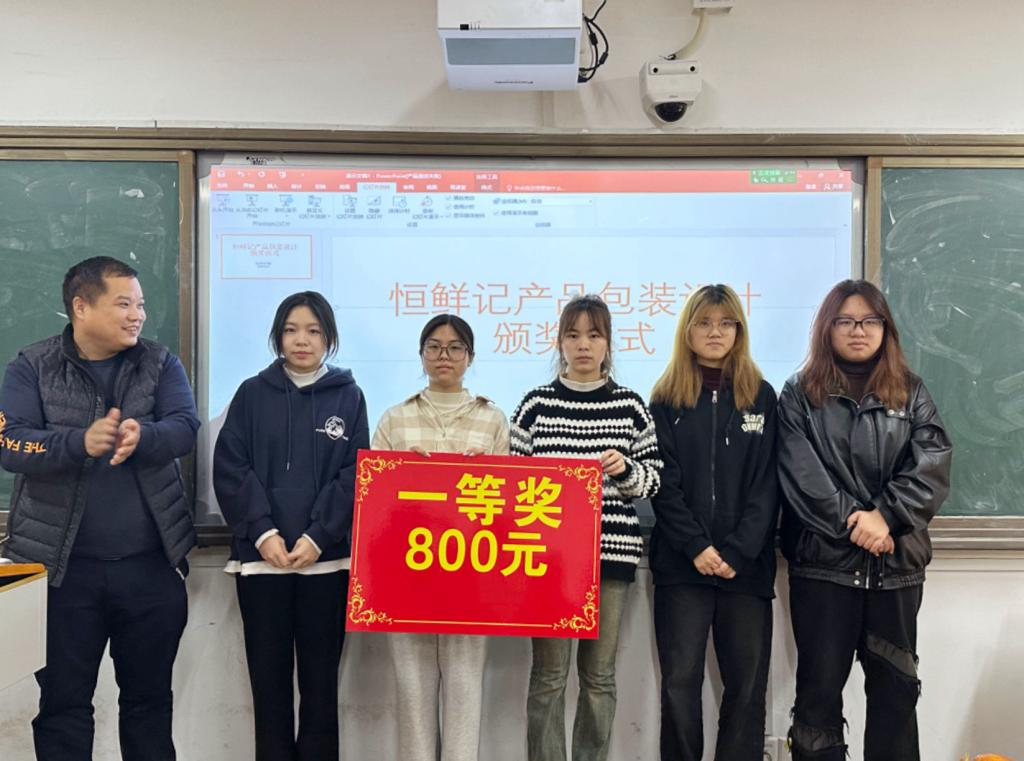 为深入推进“校友回湘”工作,服务学院高质量发展,3月14日下午,由2002级校友罗光德赞助的“恒鲜记”农产品包装设计比赛颁奖仪式在6105教室举行。工业设计2201班三个团队分获一、二、三等奖。设计艺术学院党政领导、辅导员参加了活动。