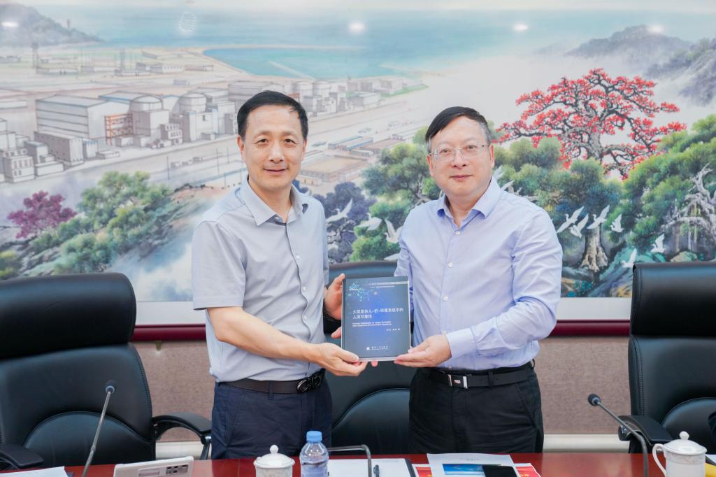 杨剑兵表示,研究所的建立将有助于多方更高效、更深入地开展人因绩效提升探索研究。他强调,阳江核电将支持依托研究所开展核电厂人因绩效前沿理论与技术专题研究并进行应用,突破人因绩效瓶颈,攻坚研究预防人因事件的新技术和方法,发挥行业内引领作用,持续提升人因绩效。张力表示,共建核电厂人因绩效提升研究所,是为了集合多方在人因研究领域的优势资源,全面、深入开展核电人因安全技术和方法研发,实现行业关键共性问题研究突破,共同推动核电行业安全、高质量发展。张力还向阳江核电、苏州热工院赠送了其最新专著《大型复杂人-机-环境系统中的人因可靠性》。