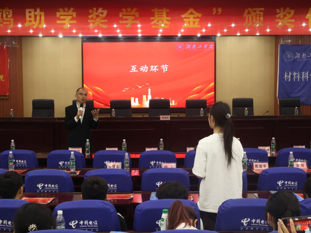4月27日,2022-2023学年“海鸥助学奖学基金”颁发仪式暨“助学筑梦,点亮未来”主题活动在蔡伦报告厅举行。校党委委员、纪委书记王艳琼到会指导,优秀校友、深圳市力特实业发展有限公司董事长邹海鸥,校教育基金会秘书长罗晓君,化学与环境工程学院党委书记周立、院长辛俊亮,材料科学与工程学院党委书记刘赢时、院长罗建新,化学与环境工程学院和材料科学与工程学院副书记、副院长、教师代表、全体辅导员出席,会议由材料科学与工程学院党委副书记李前奔主持。