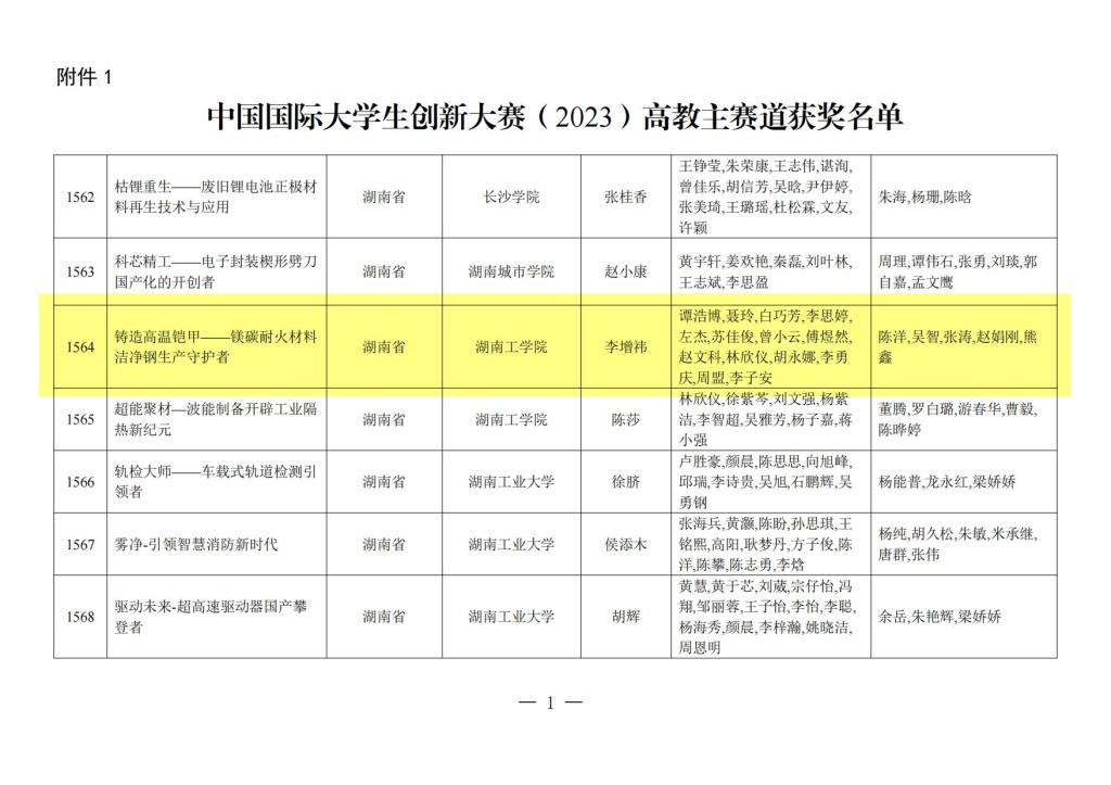 近期,教育部正式公布了中国国际大学生创新大赛(2023)获奖名单,我校材料科学与工程学院李增祎、谭浩博、聂玲、白巧芳、李思婷等同学的创新创业项目《铸造高温铠甲——镁碳耐火材料洁净钢生产守护者》荣获国家铜奖,该项目由青年博士陈洋带队。项目历经8个月的时间,先后40余次打磨,历经院赛、校赛、网络评审、省赛,从入围现场赛的409个项目中成功脱颖而出。
