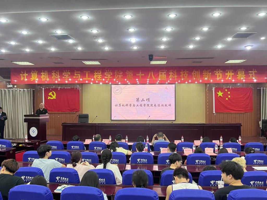 5月16日晚上,计算机科学与工程学院在蔡伦报告厅举办了第十八届科技创新节开幕式,学院党委书记叶正明、院长陈敏、副书记黄馨仪、各教研室主任及全体辅导员出席了开幕式,团学干部和学生代表一百余人参加活动。
