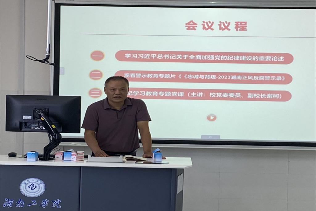 7月5日上午,校党委委员、副校长谢柯以一名普通党员身份参加马克思主义学院教工一支部在社科楼408教室举行的党纪学习教育暨警示教育会,并为支部全体党员上党纪学习教育专题党课。