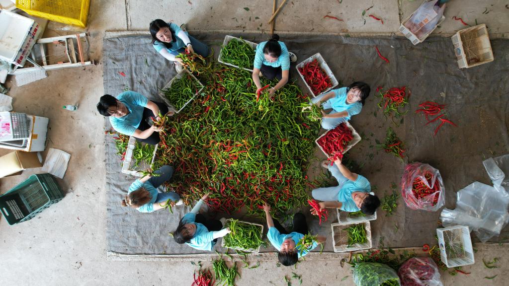 “菜篮子”实践团在蔬菜种植基地分拣辣椒