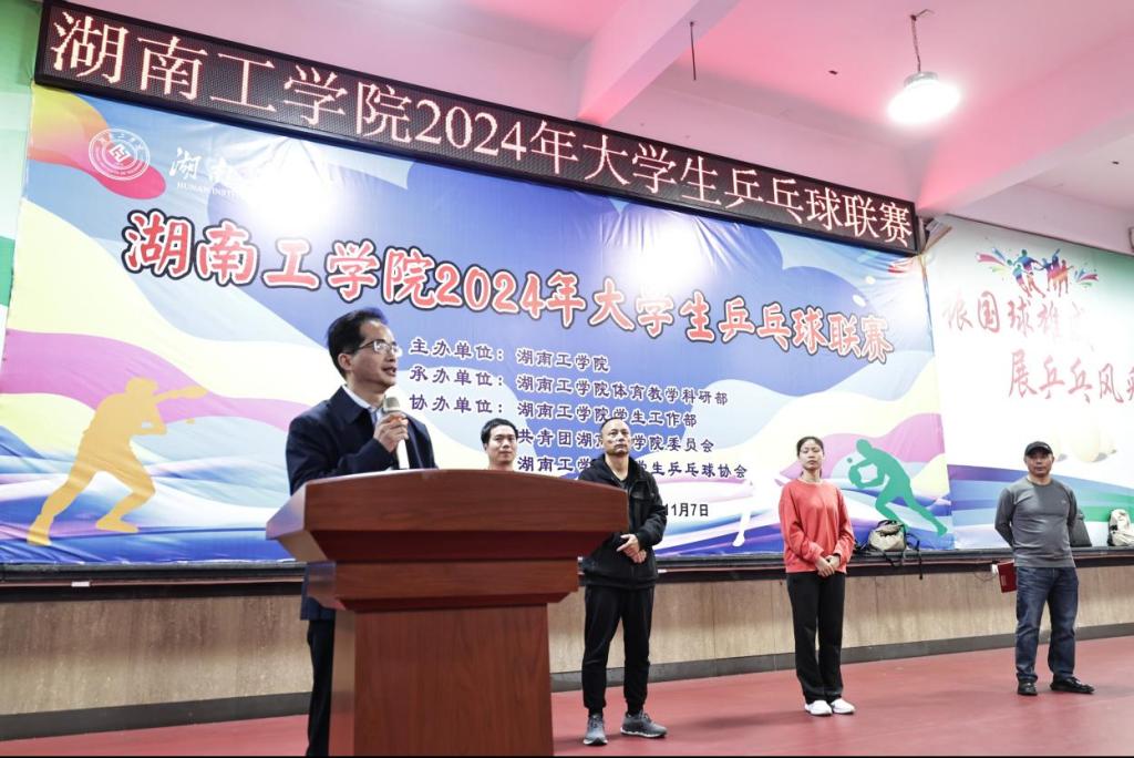 10月28日,金沙990线路检测2024年大学生乒乓球联赛开幕式在校乒乓球教学训练中心举行。本次比赛旨在弘扬国球精神,增强学生体质,促进校园体育文化的繁荣发展。校党委委员、纪委副书记袁勤出席开幕式。