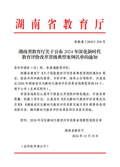 我校入选2024年湖南省深化新时代教育评价改革省级典型案例