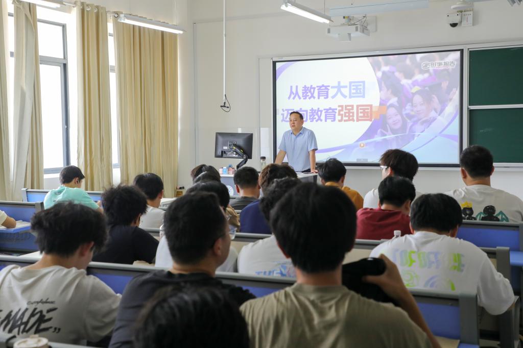 校长曾广胜以“从教育大国迈向教育强国”为题,为土木2403-04班同学授课。他结合2024年9月全国教育大会以及2025年1月印发的《教育强国建设规划纲要(2024—2035年)》,详细阐述了新时代以来我国教育事业实现历史性跨越,取得举世瞩目的发展成就,我国建设教育强国的重大意义、战略任务和重大举措,勉励青年学生要主动肩负起新时代新征程党赋予的使命任务,积极投身到中国式现代化建设的伟大实践中。