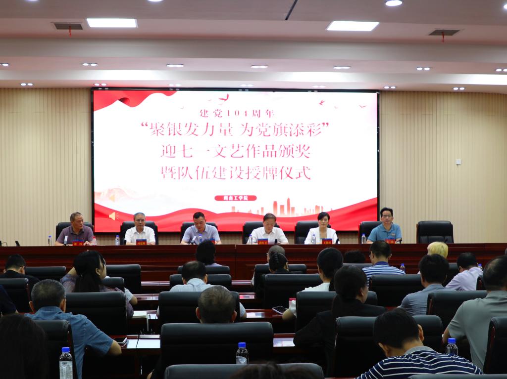 在中国共产党成立104周年来临之际,6月24日上午,学校在船山报告厅举行“聚银发力量 为党旗添彩”迎七一文艺作品颁奖暨队伍建设授牌仪式。