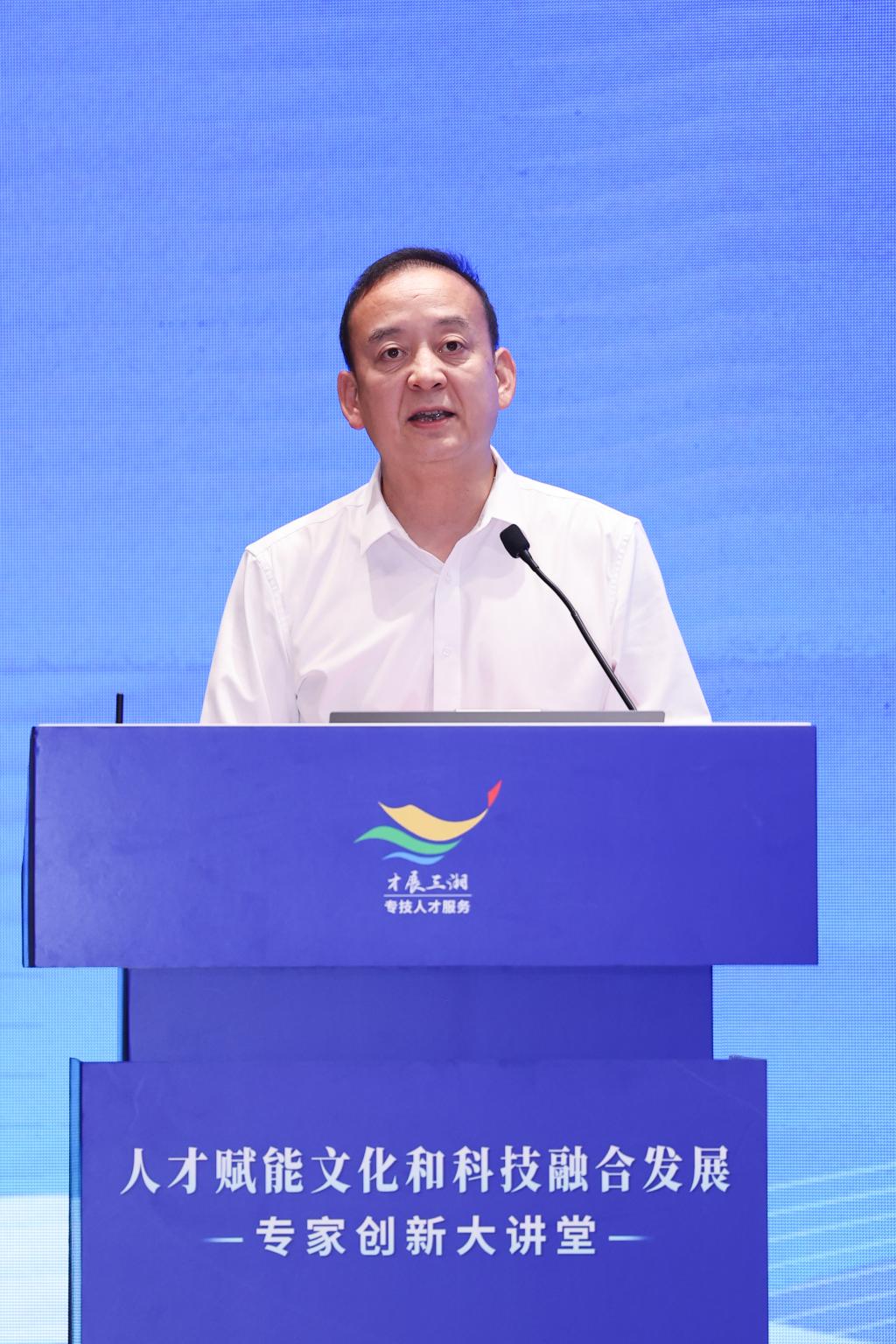 此次专家创新大讲堂由1个主讲堂、2个分讲堂、2个人才活动构成。主讲堂特邀中国工程院院士、中央电视台原总工程师丁文华,中国工程院院士、同济大学原副校长吴志强作主旨演讲。作为系列活动的重要组成部分,我校协办的“人才赋能文化科技新业态”分讲堂,因其前瞻的议题设置、高端的嘉宾阵容和丰富的活动形式,赢得了广泛好评。