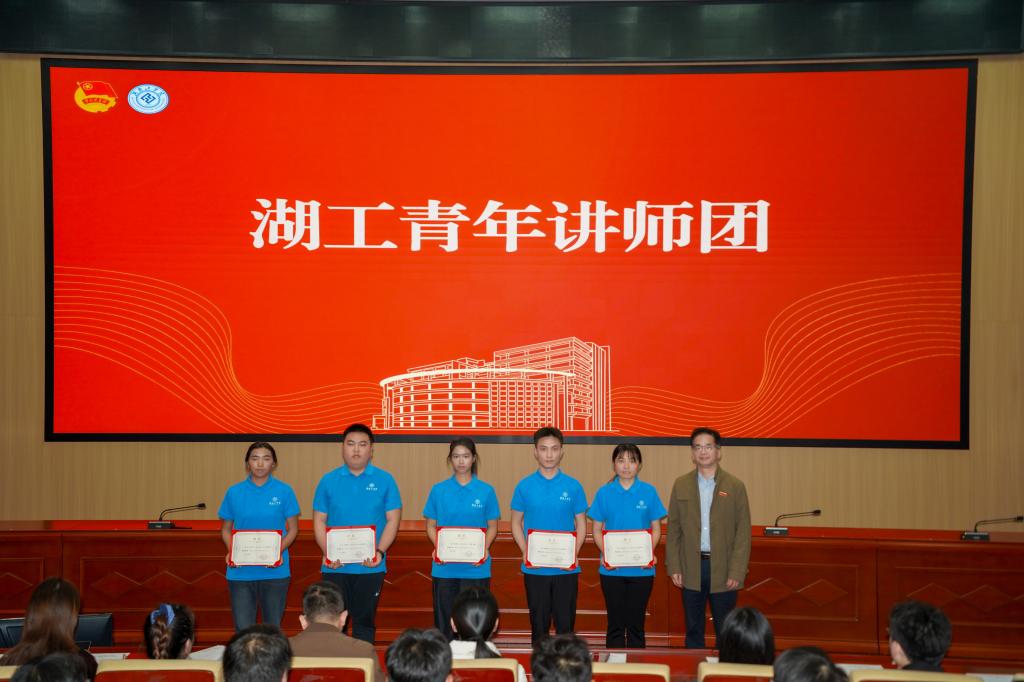 复材2202班贺晶凤、成型2201班冷邦昊、电气2511班洪琬贞、环境2201班王彦彬、金融2501班旦增、网络2001班邹勇六位青年讲师团成员分别围绕科技创新、卫国戍边、乡村振兴、绿色发展、社会服务为主题,讲述他们在湖工的故事和成长感悟,号召广大湖工学子努力学习,奋勇拼搏,躬身实践,报效国家,把青春过得热烈又闪亮,书写灿烂的青春答卷。