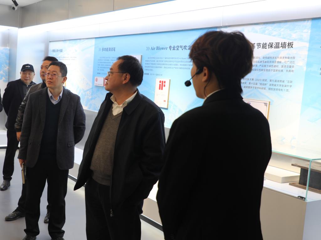 在科技馆,刘朝晖认真察看学校近年来在科技创新、产学研合作和成果转化等方面的成绩,详细了解相关科研平台建设及代表性科研成果情况,并就科技创新工作与相关负责人进行交流。刘朝晖指出,科技创新是推动学校高质量发展的重要支撑。要立足学校发展定位,围绕国家战略需求和地方经济社会发展需要,大力推进有组织科研,整合科研力量,推动优势学科和科研团队集聚发展,努力形成一批具有影响力的科研成果,不断提升学校科技创新能力。