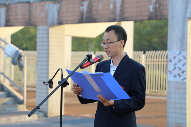 10月17日上午7点,化学与环境工程学院在北运动场举行了以“青春献礼二十大,奋进奔跑向未来”为主题的升旗仪式。学院党委书记周立,院长辛俊亮,党委副书记蔡玲,副院长黄俊歆,副院长刘宁,组织员谭斌,教科办主任刘赛,全体辅导员及新生班主任老师出席,全体学生参加。本次升旗仪式由学工办主任兼分团委书记陈凌霄主持。
